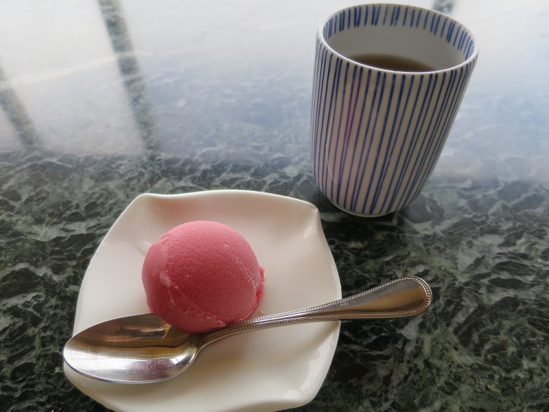 さっぱりと季節のシャーベット&ほうじ茶でした。