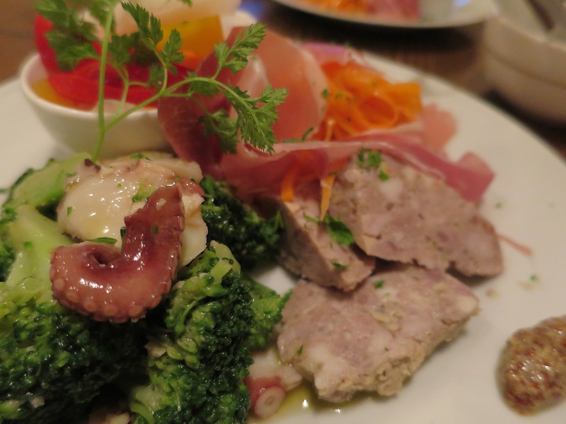 豚肉のリエット、ブロッコリーとタコのカルパッチョ?はレギュラーメンバーですね。